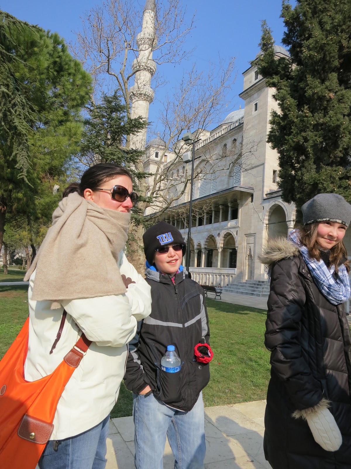 Here is Daph viewing the harbor from the palace entrance to the most important mosque in Istanbul.